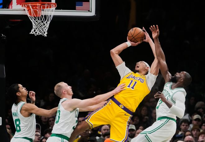 北京时间12月6日,湖人惨败凯尔特人无缘连胜。这场比赛湖人实在是太惨烈了,东契奇因为第二个孩子出生还在斯洛文尼亚,41岁的老勒布朗无法出战背靠背,奥斯汀-里夫斯一人苦撑全队,但他也不是篮球之神无法在这样不利的情况下带队击败近期状态神勇的绿凯,最终里皇空砍36+8。